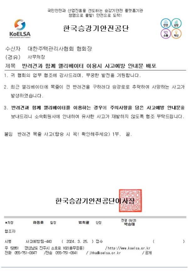 올바른 승강기 탑승 팻티켓도 함께 했으면