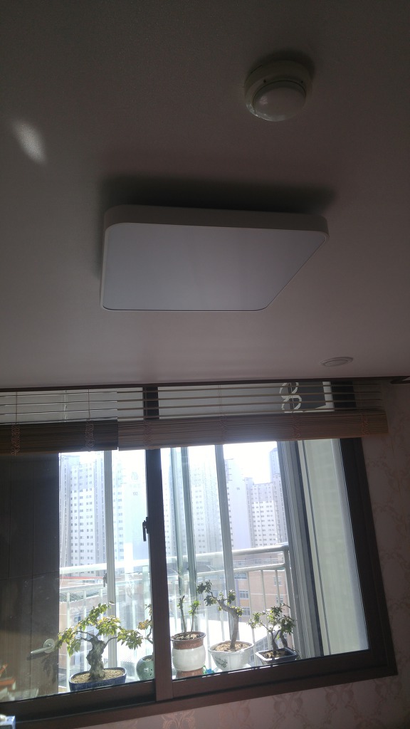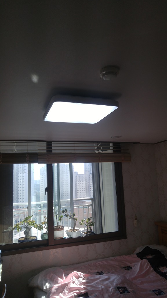 그런데 아래 사진처럼 거실등을 방등으로 설치를 하셔서 밝기가 어둡습니다