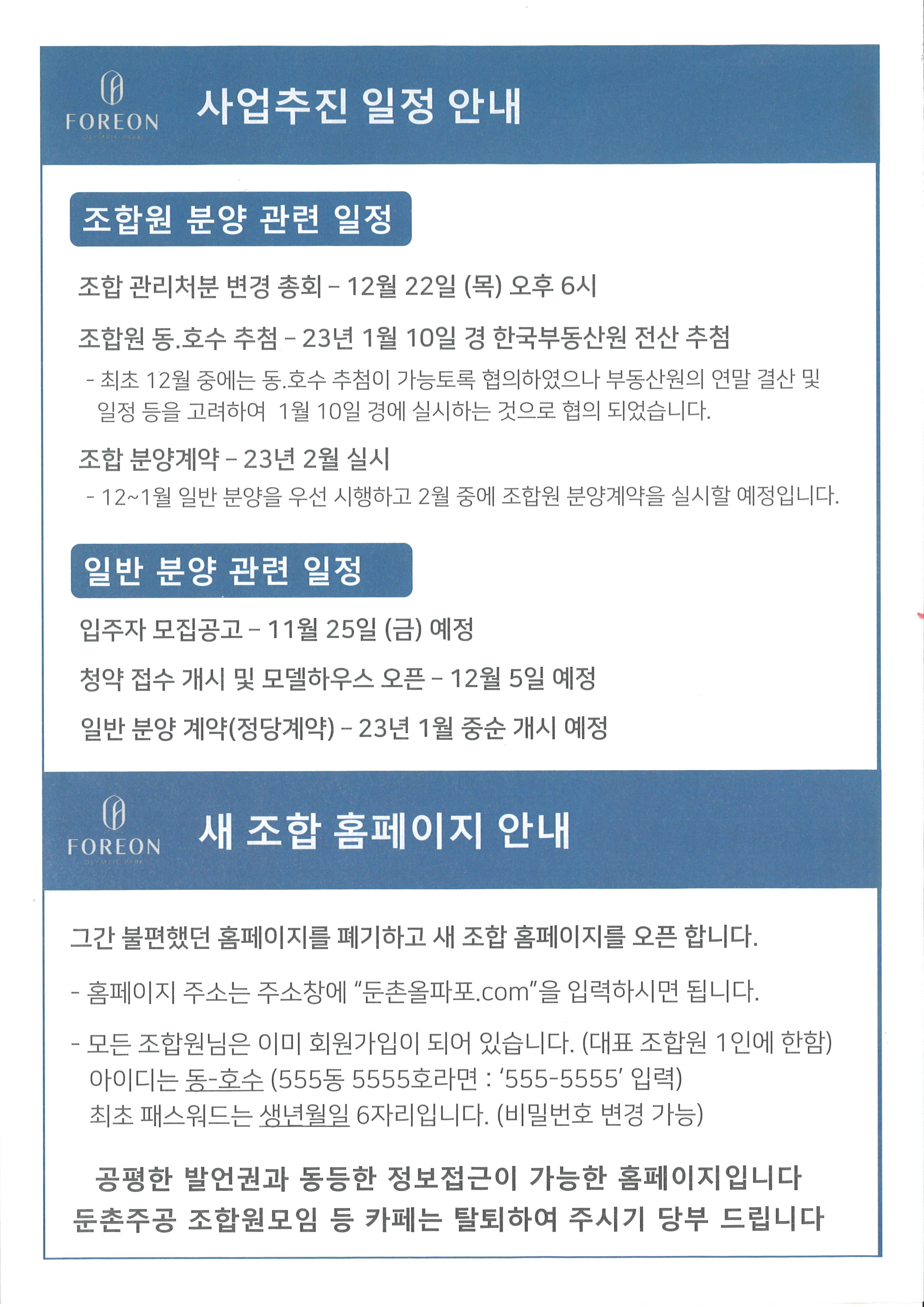 둔촌주공아파트 일반분양공고 및 일정 22.11.24 작성자스피드|작성시간22.11.24|조회수38 목록 댓글 0 글자크기 작게가 글자크기 크게가 다음검색 현재 게시글 추가 기능 열기 북마크 공유하기 신고 센터로 신고 댓글 댓글 0 댓글쓰기 답글쓰기 댓글 리스트