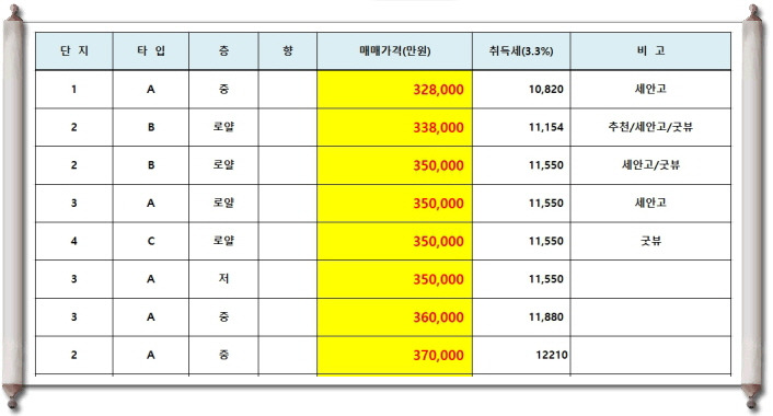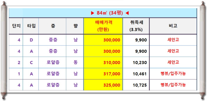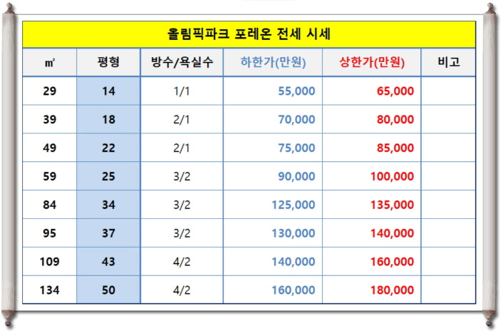 | ※아래 매물은 올림픽파크포레온을 중개하는 모든 업소에 매물로 나와있는 거래 가능한 물건들입니다. 그중 최저가와 선호도 순으로 올려드립니다. |