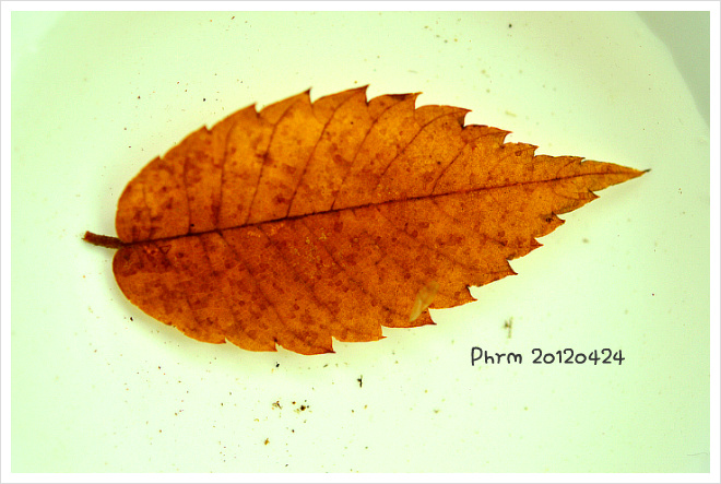 띠무늬우묵날도래가 좋아하는 나뭇잎- 느티나무잎?