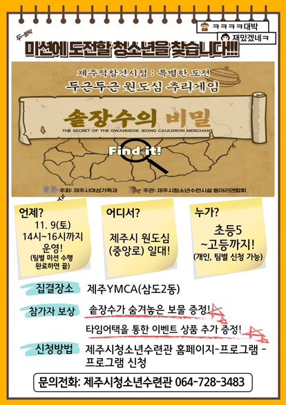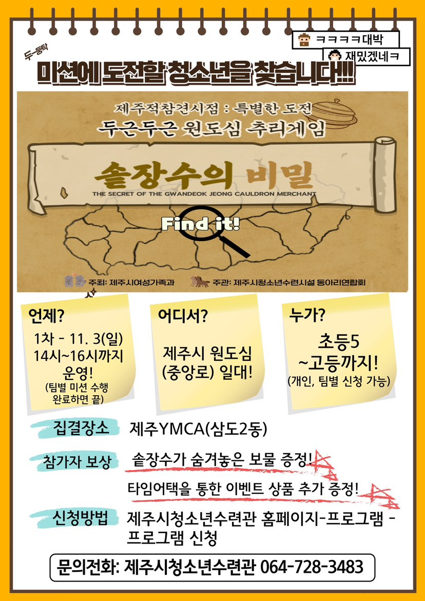 2024 청소년수련시설 동아리 연합 프로그램 두근두근 원도심 추리게임에 참여하세요 작성자램프의 요정|작성시간24.11.02|조회수140 목록 댓글 0 글자크기 작게가 글자크기 크게가 다음검색 현재 게시글 추가 기능 열기 북마크 공유하기 신고 센터로 신고 댓글 댓글 0 댓글쓰기 답글쓰기 댓글 리스트