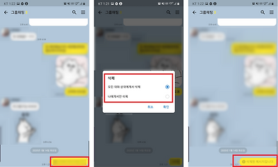 참고로 이 기능은 톡을 보낸 후 5분 이내에 삭제해야만 적용되니 실수로 보냈다면 즉시 삭제를 해야 한다. 메시지를 삭제한 후에는 미리보기로 보이는 메시지는 사라지며 톡방에 '삭제된 메시지입니다'라는 안내 문구만 남게 된다.