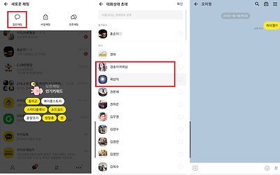 대화를 입력하기 전까지는 두 사람 모두 초대된 것으로 보이지만, 대화를 입력하는 순간 나를 차단한 사람은 채팅방에서 사라지고 그렇지 않은 친구와 본인만 채팅방에 남아있는 것을 확인할 수 있을 것이다.