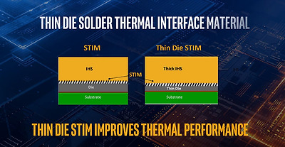 발열 관련 기능도 개선했다. 인텔 9세대 코어 프로세서에서는 일명 ‘뚜따’라 불리는 IHS 제거 작업을 통해 온도를 낮추는 방법이 유행했는데, 이번 인텔 10세대 코어 프로세서는 따로 IHS 제거 작업을 해 주지 않아도 안정적으로 온도를 관리한다. 이는 다이를 얇게, IHS를 굵게 변경해 열전달을 쉽게 만들었기 때문이다.
