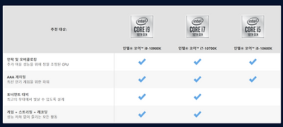 | 프로세서 | i9-10900K | i7-10700K | i9-9900K | i7-9700K |