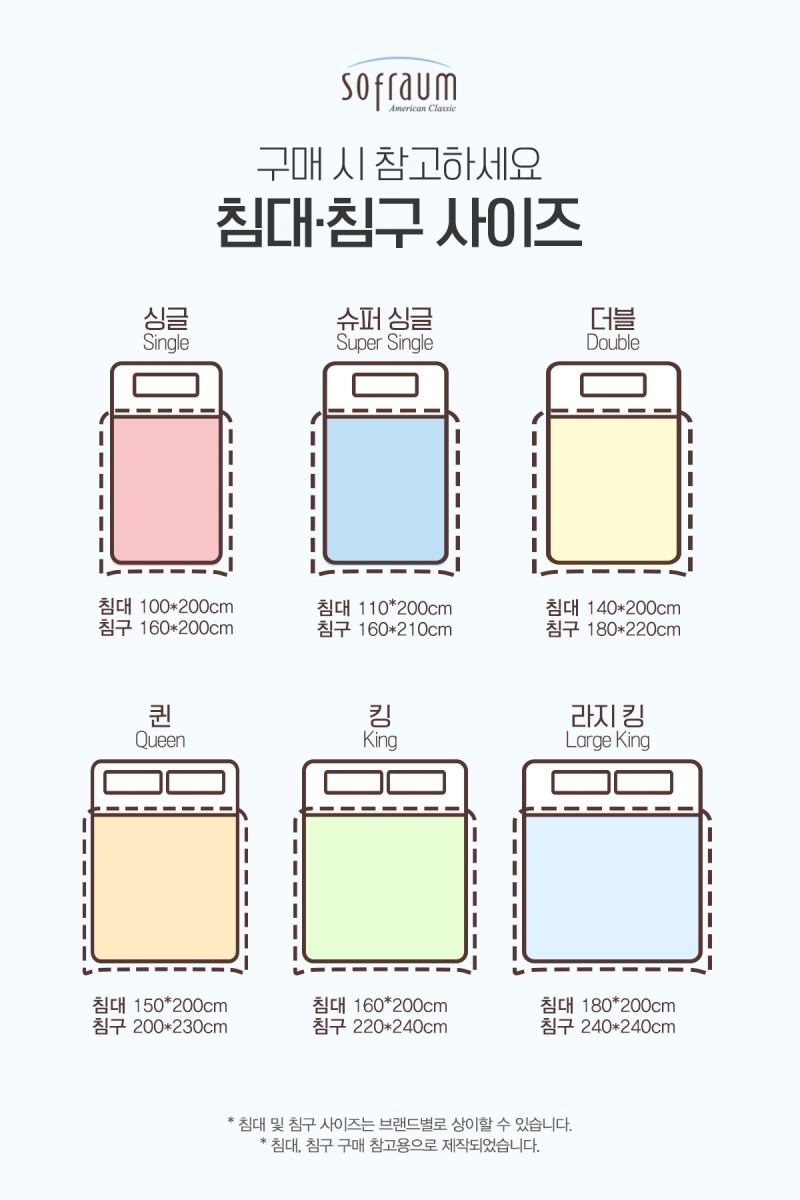 ▲ 침대/침구 사이즈표 (출처: 소프라움)