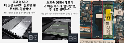 ▲2018 LG올 뉴 그램 노트북에는 M.2 SSD를 두 개 장착할 수 있어 용량 업그레이드가 편리하다