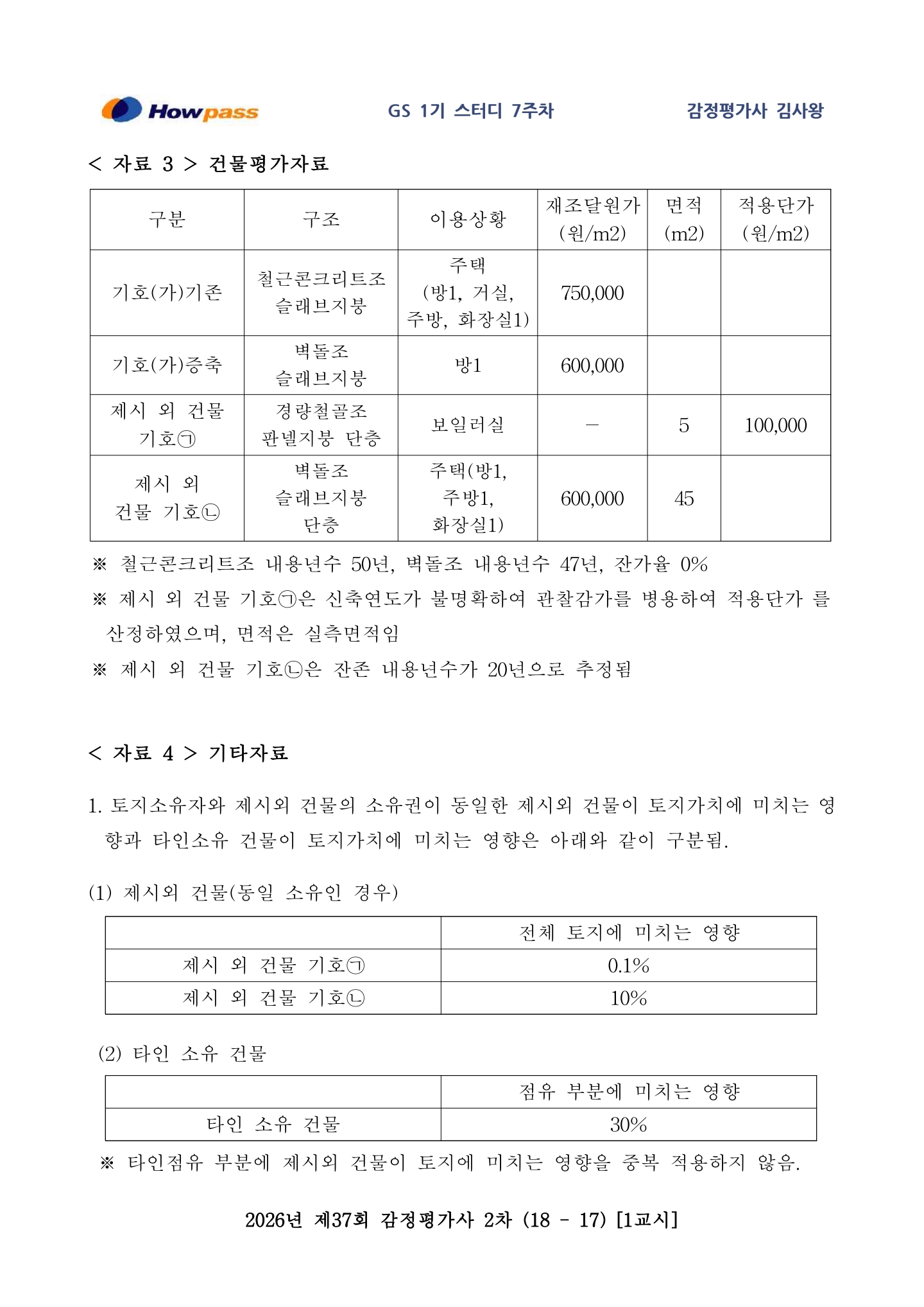 기타자료에서 이 부분은 보고 '감가평가하는건가?' 하고 헷갈렸는데요