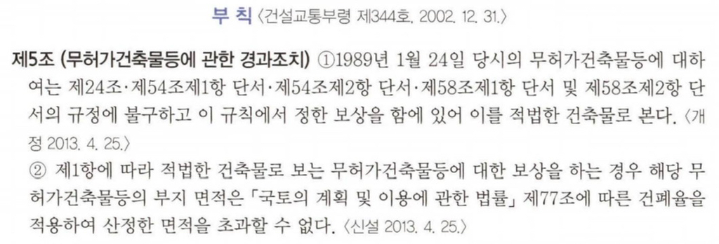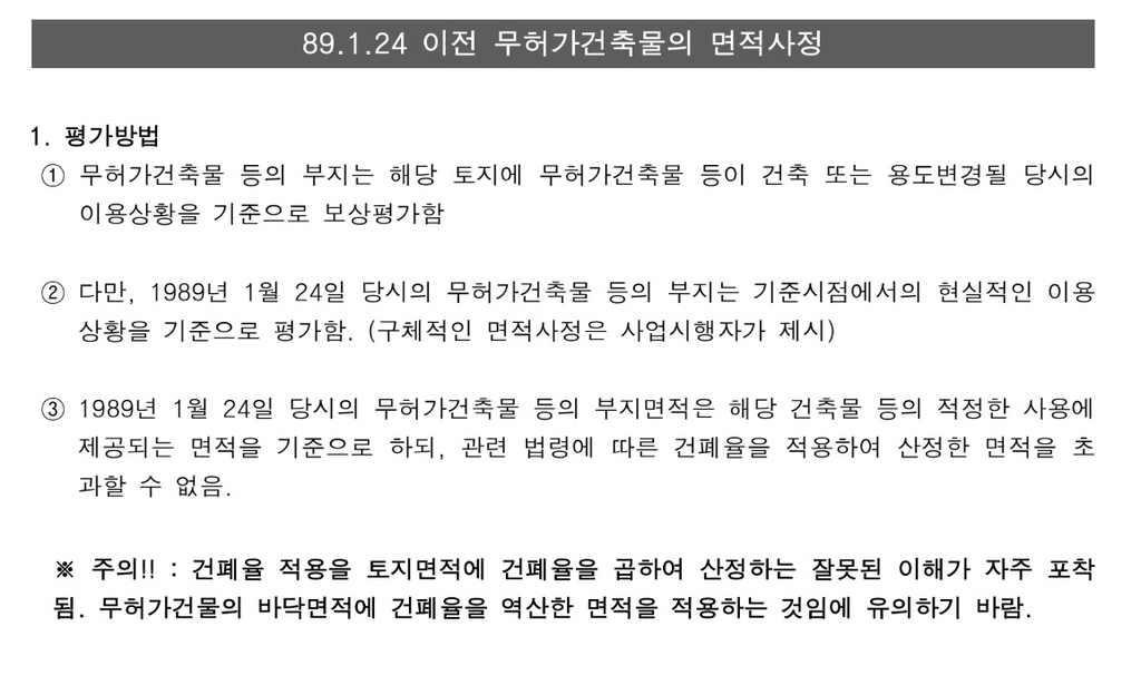 89.1.24 당시 무허가건축물은 적법건축물로 보고 (1항)