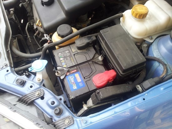 (이때는 +극을 먼저 연결합니다.-극을 먼저 연결했다가 실수로 +극이 차체에 닿아 불꽃이 튀고 합선으로 인하여 밧데리가 폭발하여 황산이 눈에 튀어 실명한 사례도 있다고 합니다.)