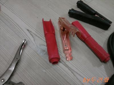 집게는 용접기용 집게로(일명악어집게)빨강2개검정2개를가까운철물점이나 공구가게에 가면 손쉽게 구할수 있습니다.