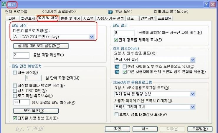이렇게 설정하면 저장할때 마다 2004버전으로 저장 되겠죠.
