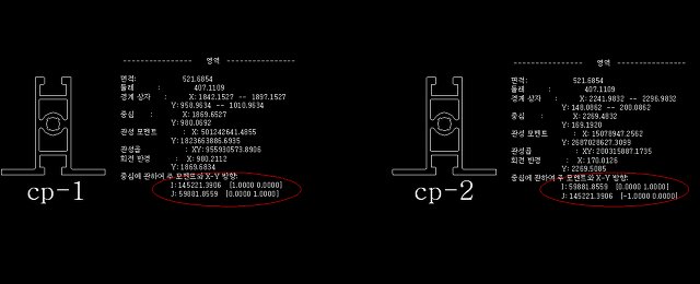 2차모멘트 결과 값이 x,y가 각각 상반돼어 나타나는 현상이 왜 그런지 모르겠습니다.(타원표시부)