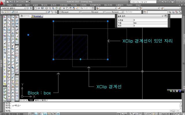 2. 어제, 새 도면에서 XClip 명령어를 실행한 후 자르기 경계를 삭제를 하니 삭제된 자르기 경계선 하부에 자르기 경계선과 동일한 경계선이 생성이 되며, 이 경계선은 잘려진 블럭의 일부가 되어버리는 상황이 발생되더군요. 즉, 새로 생성된 경계선을 삭제를 하면 블럭도 함께 삭제가 된다는 것이죠.
