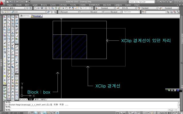 이것이 XClip의 일반적 진행이며, 이 XClip 명령 실행후 자르기 경계를 삭제해도 블럭이나 외부참조 도면에는 어떠한 영향도 미치치 않는것으로알고 있는데,