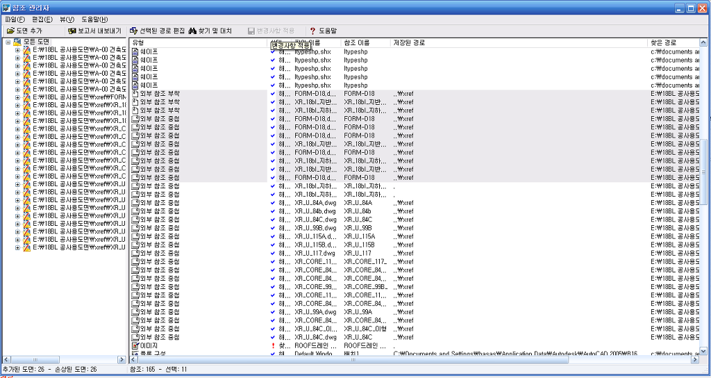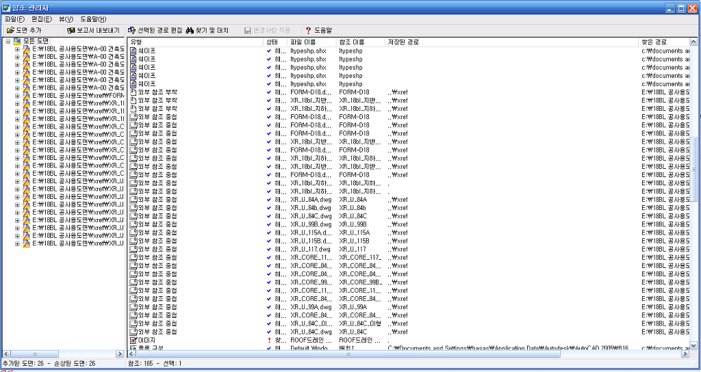 5. 선택된 도면 안에 들어있는 여러 참조들이 나옵니다.