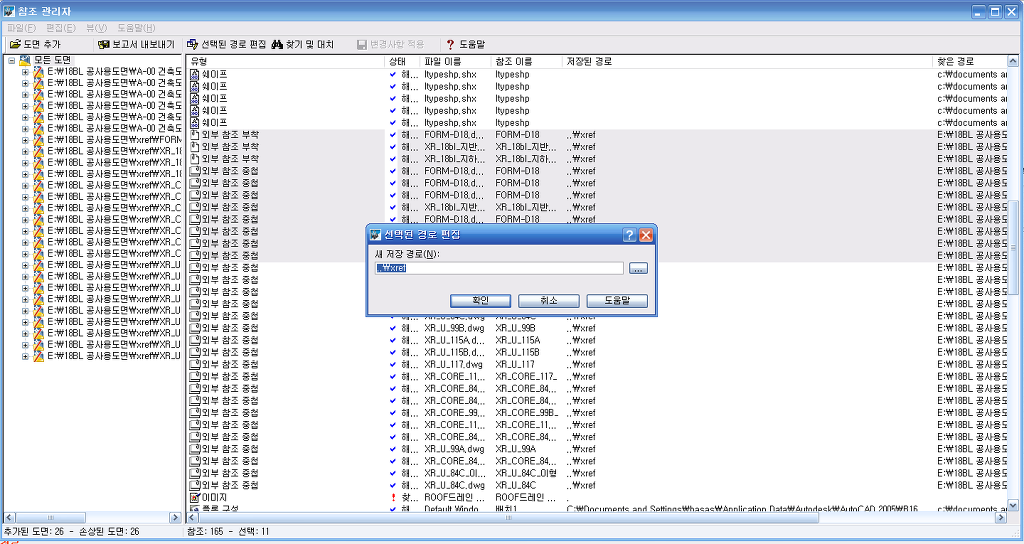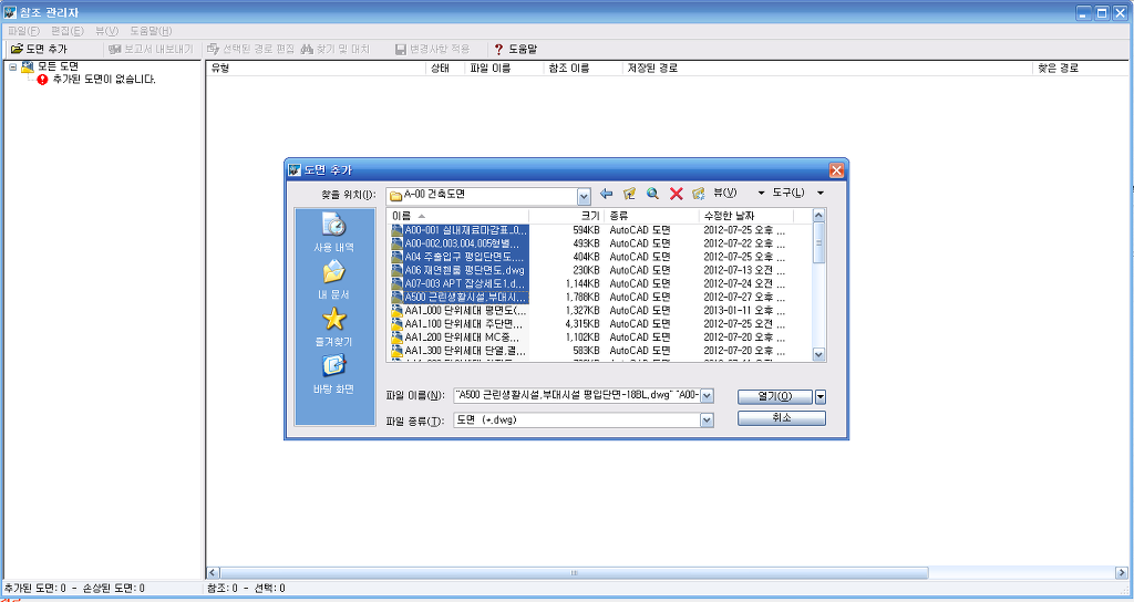 3. 도면추가 창이 열리면 참조 경로를 수정할 도면을 모두 선택합니다.