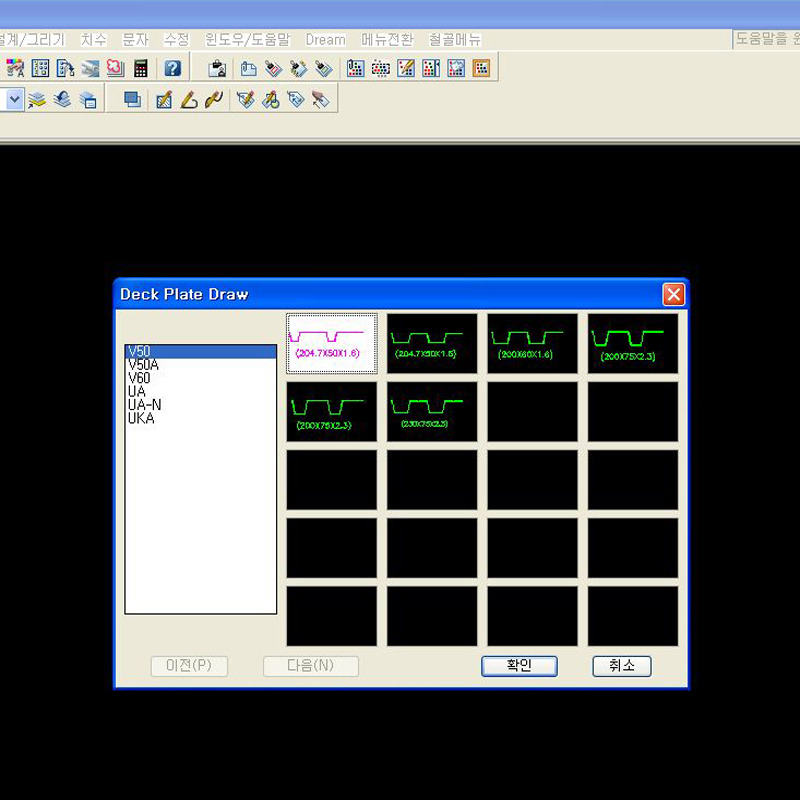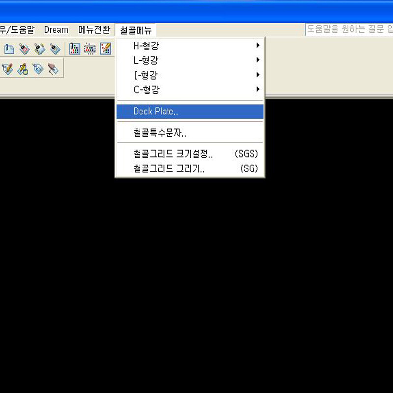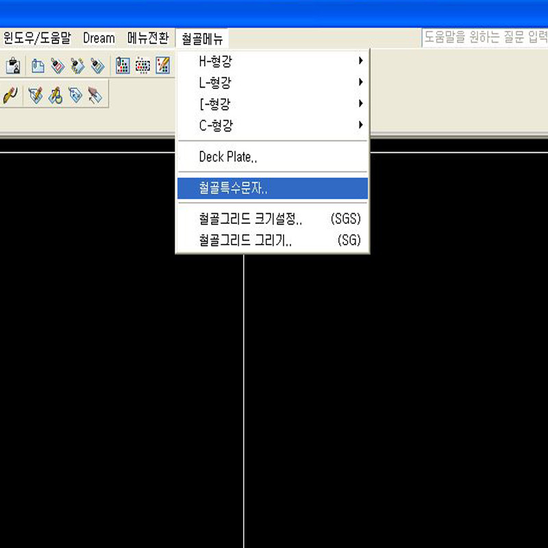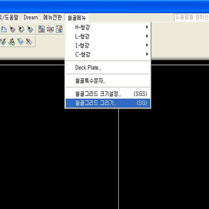 좀전에 압축을 푼 디렉토리에 가서 철골메뉴.mnu를 선택하고 열기를 클릭하여 로드를 누르고 창을 닫습니다 그러면 캐드화면의 상단팝업메뉴를 보면 철골메뉴가 추가가 되어있음을 알수있읍니다.