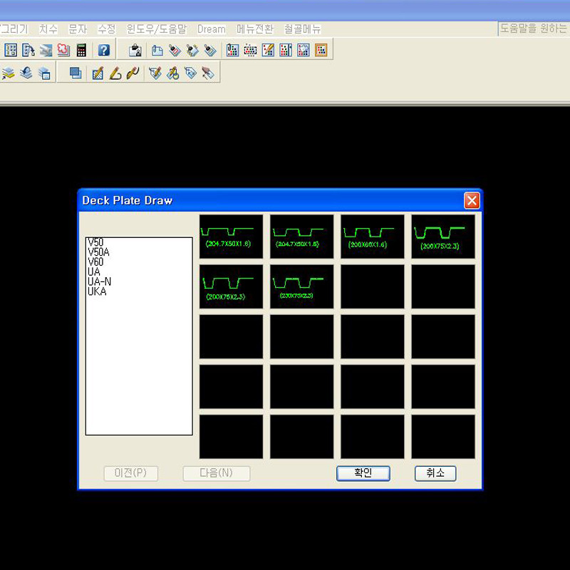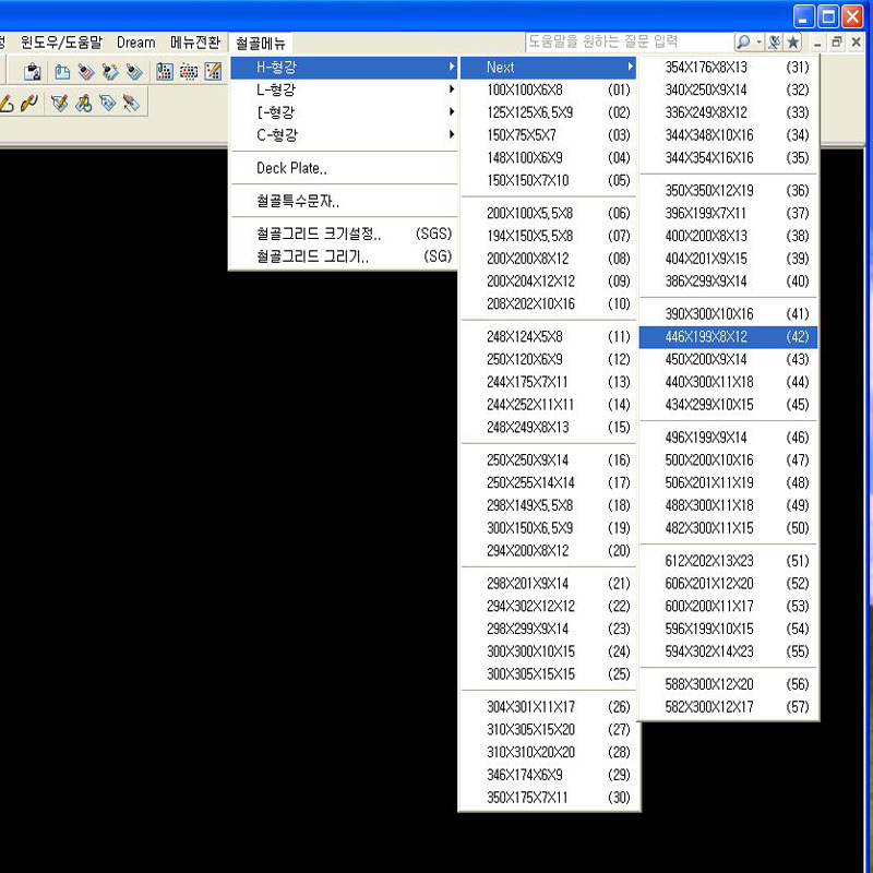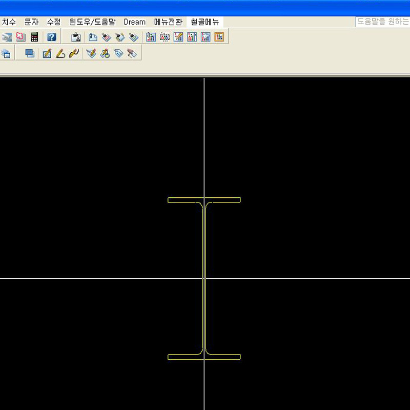 많이 사용하는 형강들위주로 만들어보았는데요 위와같이 형강을 선택하여 클릭하면 해당철골이 인서트됩니다.
