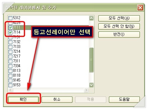 해당 2개의 레이어만 활성화를 시켜주고 확인!!