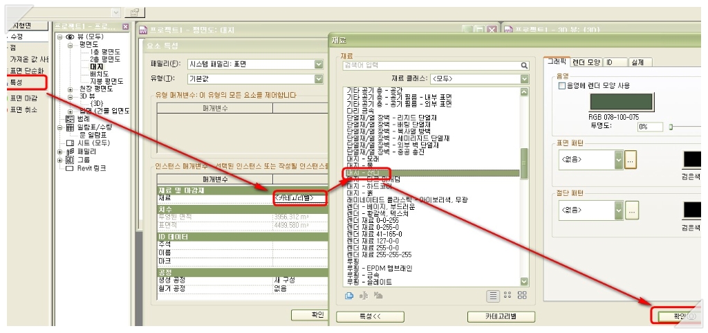 특성 > 카테고리별 > 재료를 대지-잔디를 선택후 확인