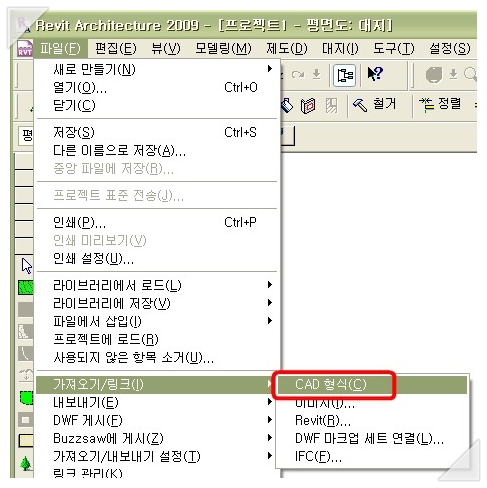 REVIT에 CAD파일이 들어왔네요.^^ 단일객체로 묵여있습니다.^^