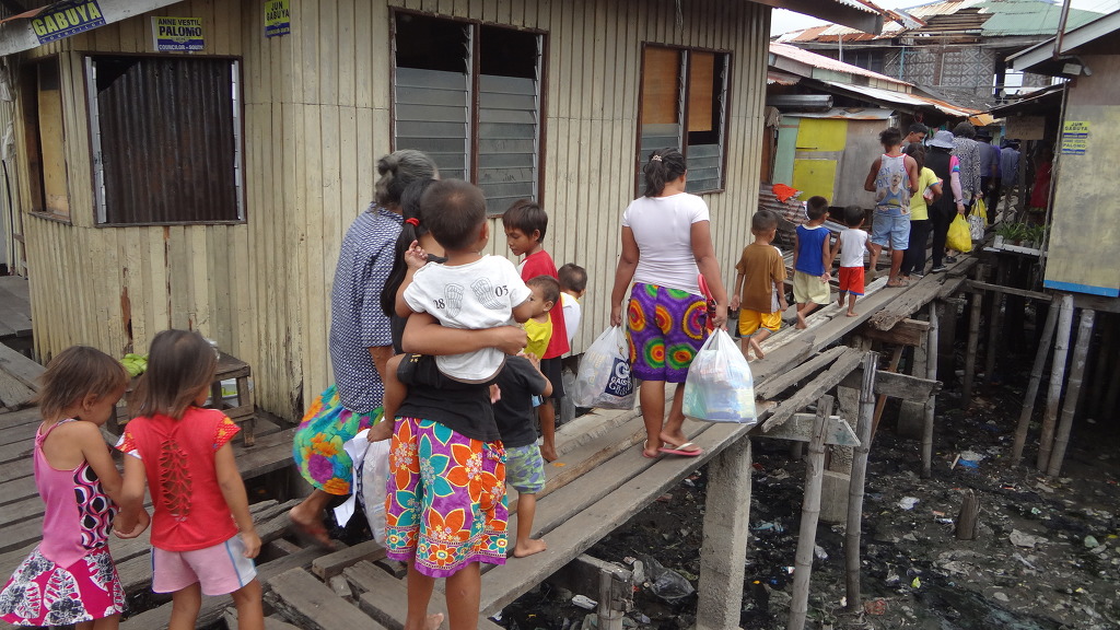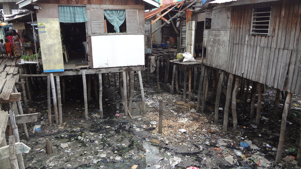 해변가의 아주 열악한 형편의 수상가옥에서 거주하고 있습니다.