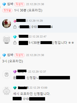 - 신청은 비밀댓글로(성함, 전화번호) 해주세요.