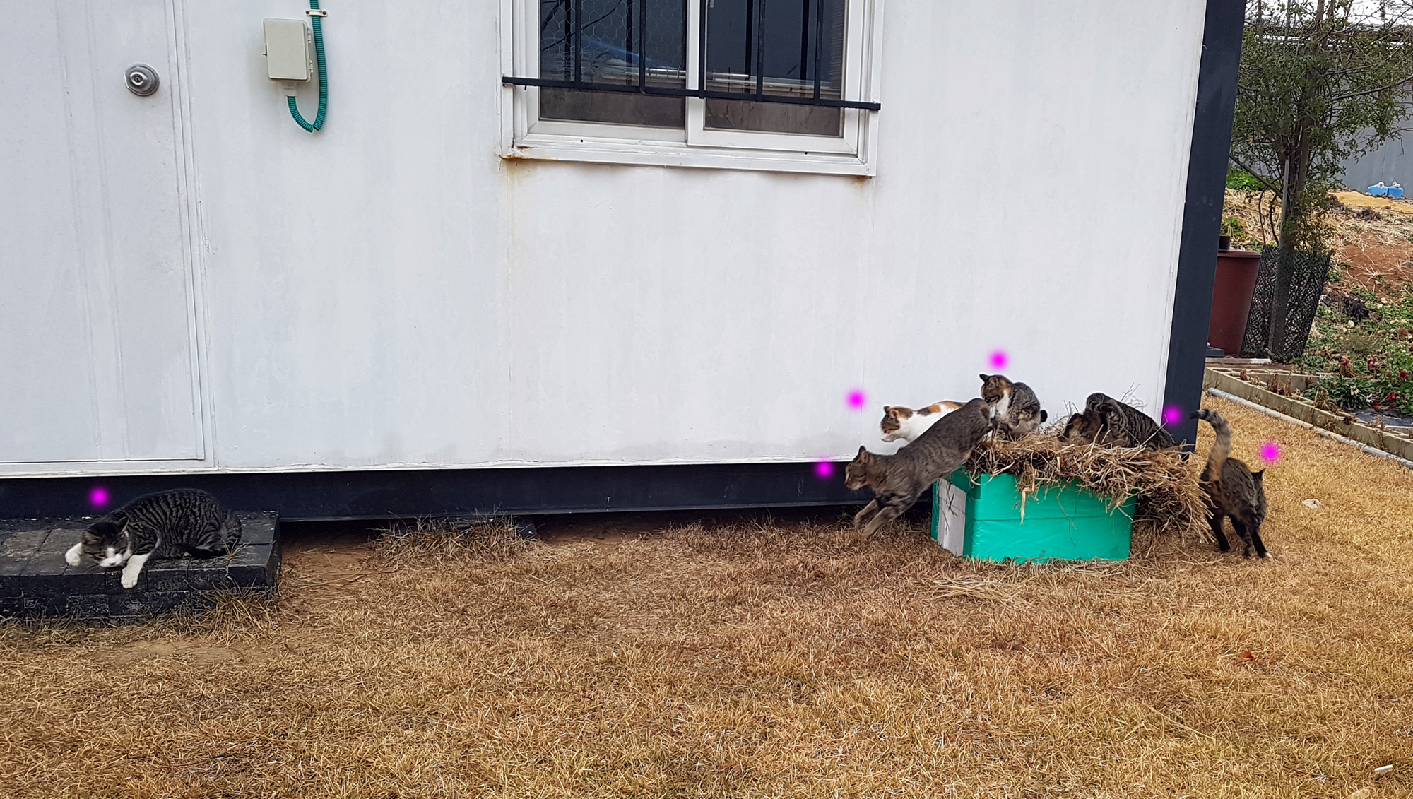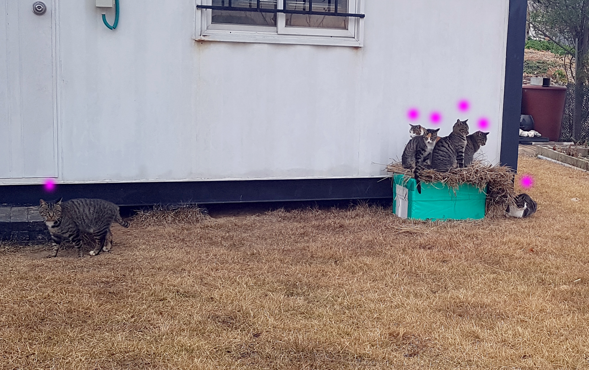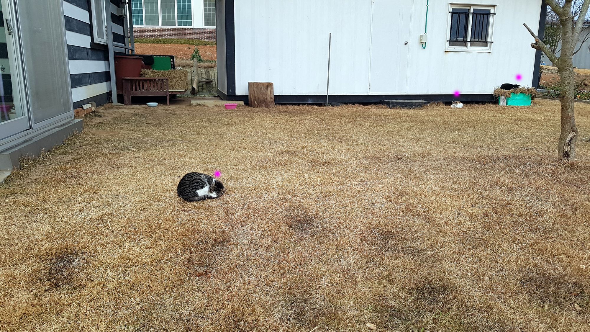 매일 하루 두차례 사료를 갖다준지 3계절이 다 되어가는데도 여전히 경계를 한다.
