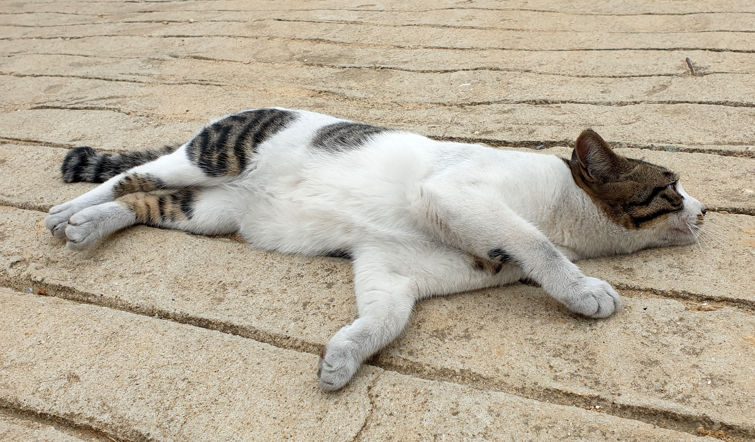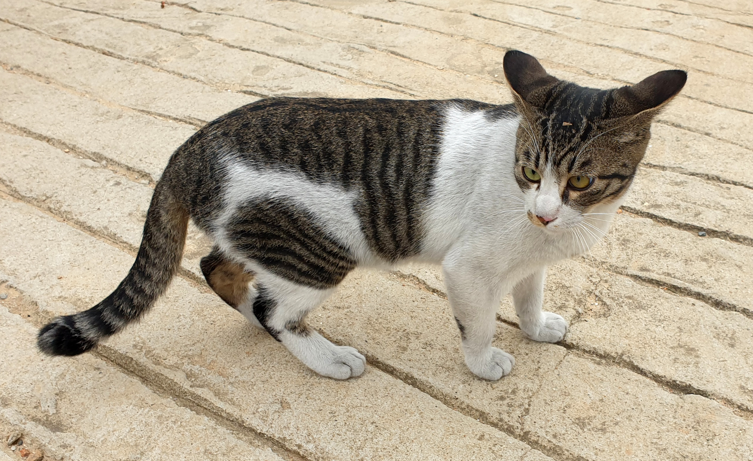 귀가 쫑긋한것이 다른 고양이를 본 것 같아 긴장한것 같다.