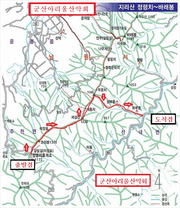 정령치(1,172)--고리봉(1,305)--이정표--세걸산(1,220)--부운치(1,140)-- 상부운마을--하부운마을- -버스탑승---지리산토비스야영장