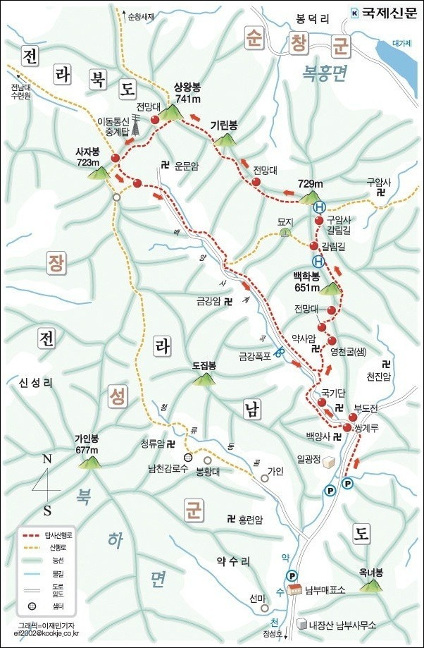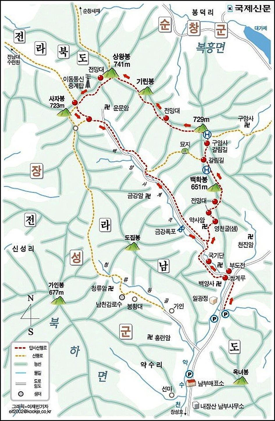 ---전망대---기린봉---백암산(상왕봉)---사자봉사거리---운문암갈림길--백양사계곡