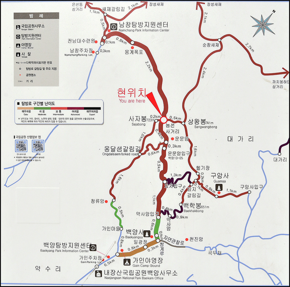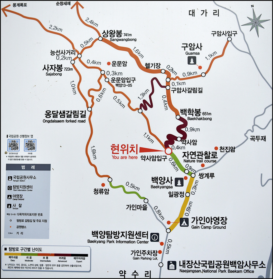 백양사주차장---백양사---약사암입구---약사암---전망대---백학봉(651m)---능선삼거리---
