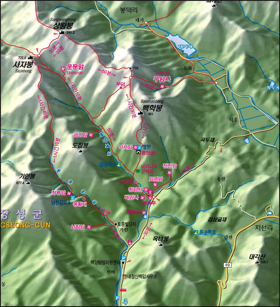 ---약사암입구---백양사---백양사주차장(약7.5km 5시간)