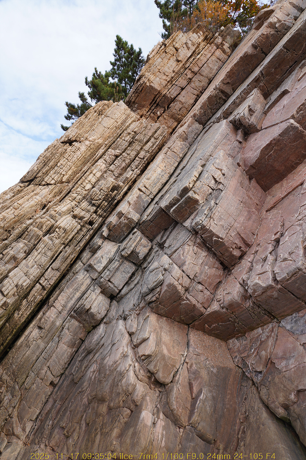 서쪽은선캄브리아기 서산층군이북리층의규암으로 구성된 바위 절벽이며서해와 접해있다.