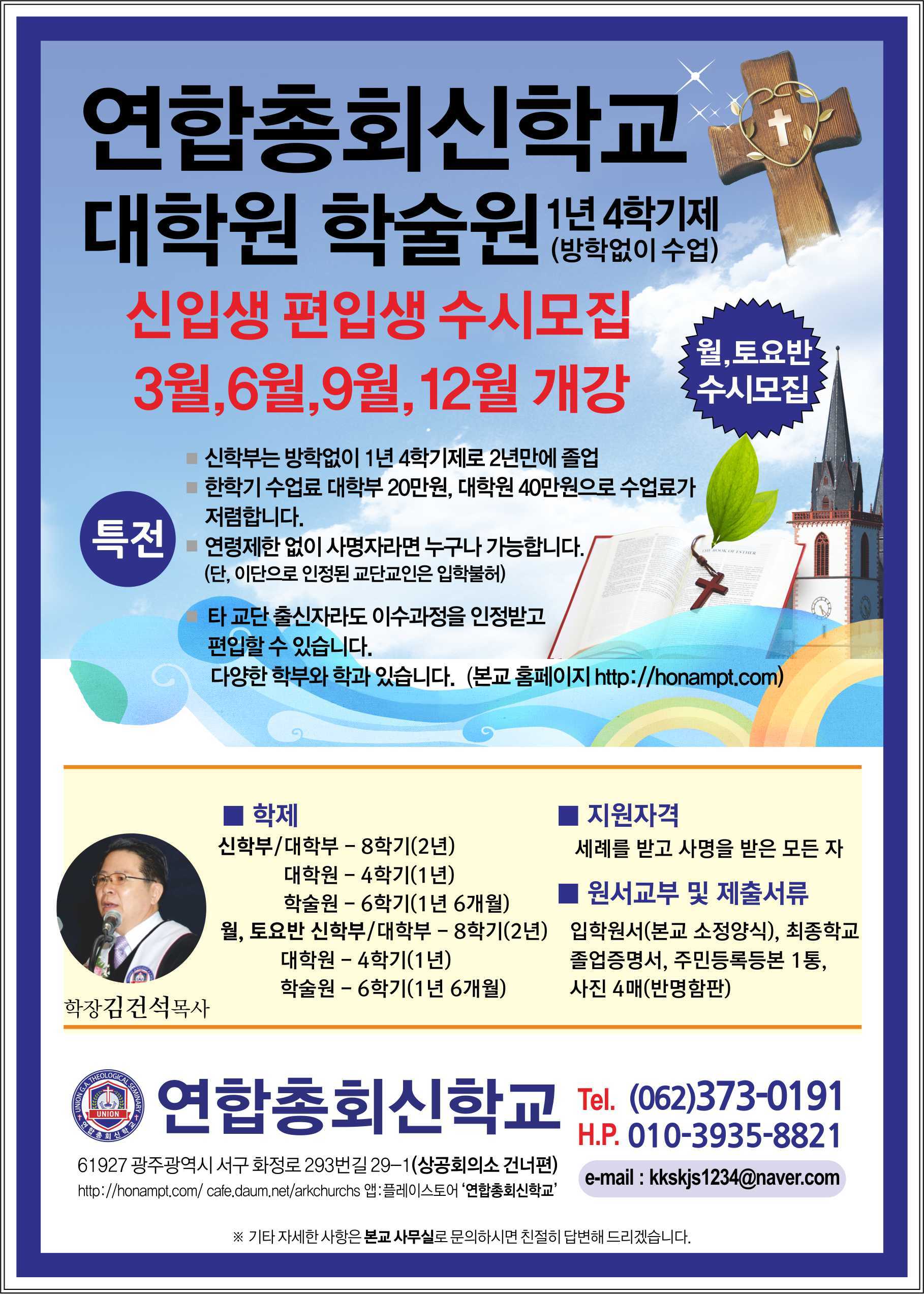신학생 모집 - 2022학년도 1학기 신입생을 모집합니다. 작성자모세|작성시간22.01.10|조회수36 목록 댓글 0 글자크기 작게가 글자크기 크게가 연합총신학교_220111 (jntimes.kr) 다음검색 현재 게시글 추가 기능 열기 북마크 공유하기 신고 센터로 신고 댓글 댓글 0 댓글쓰기 답글쓰기 댓글 리스트