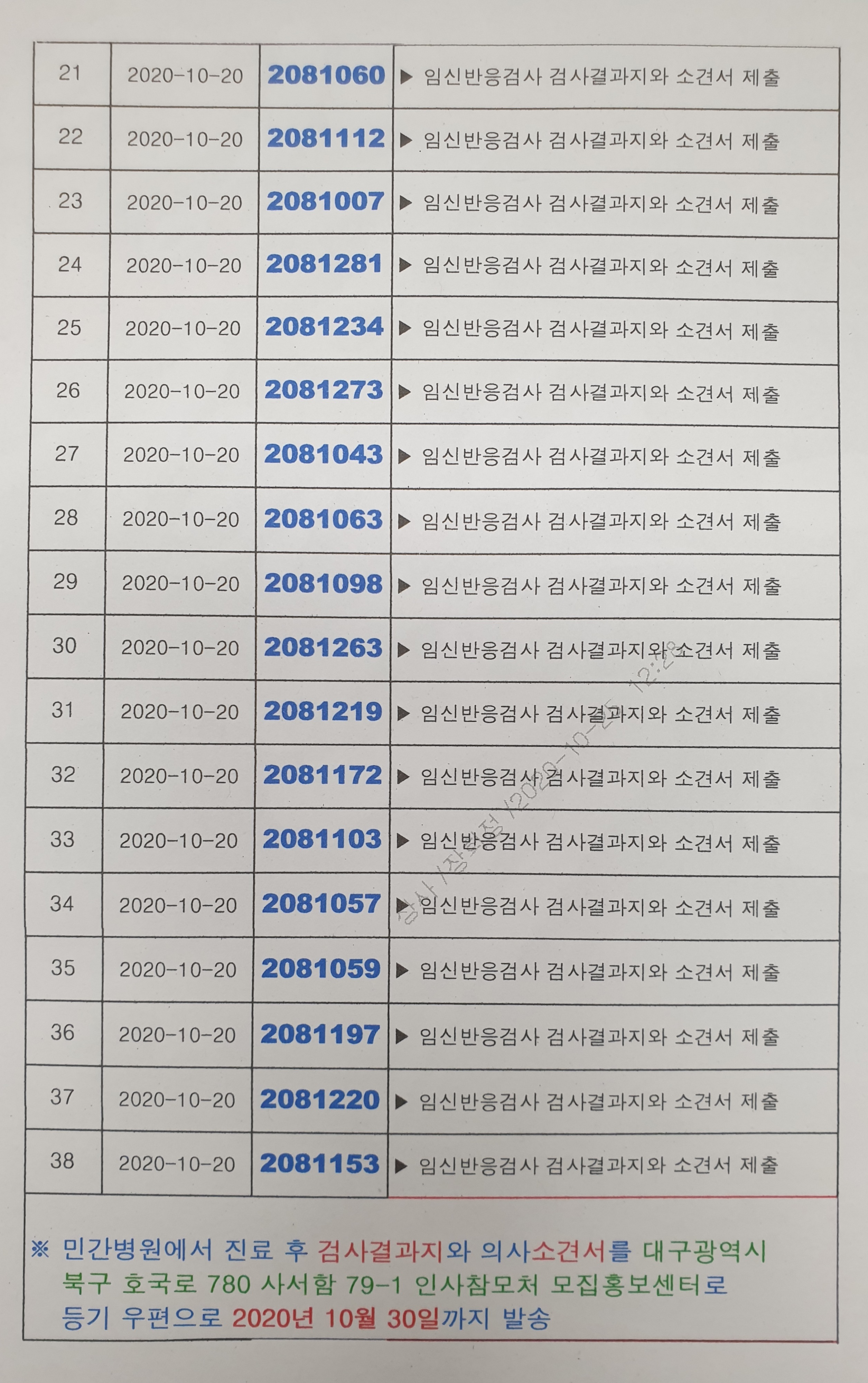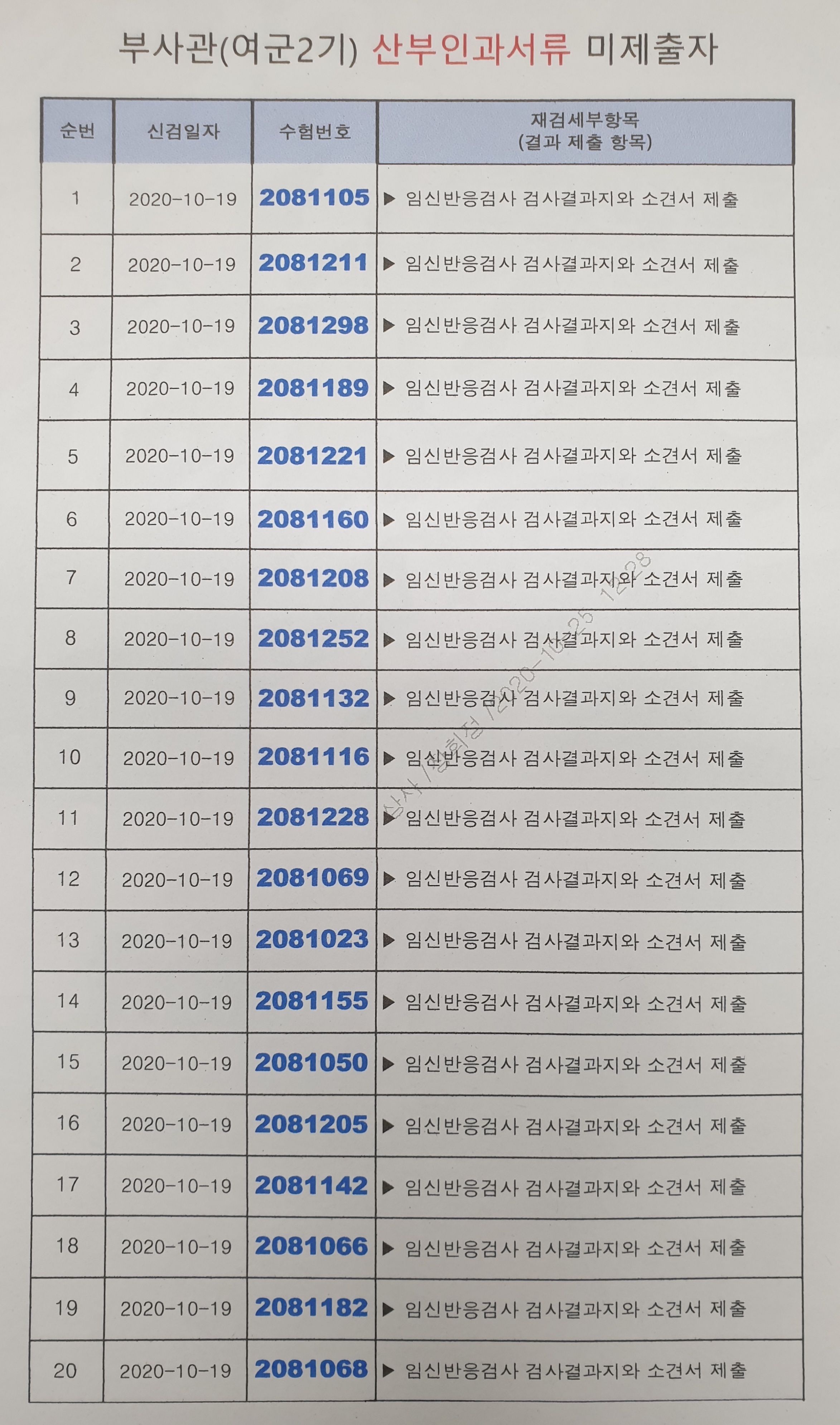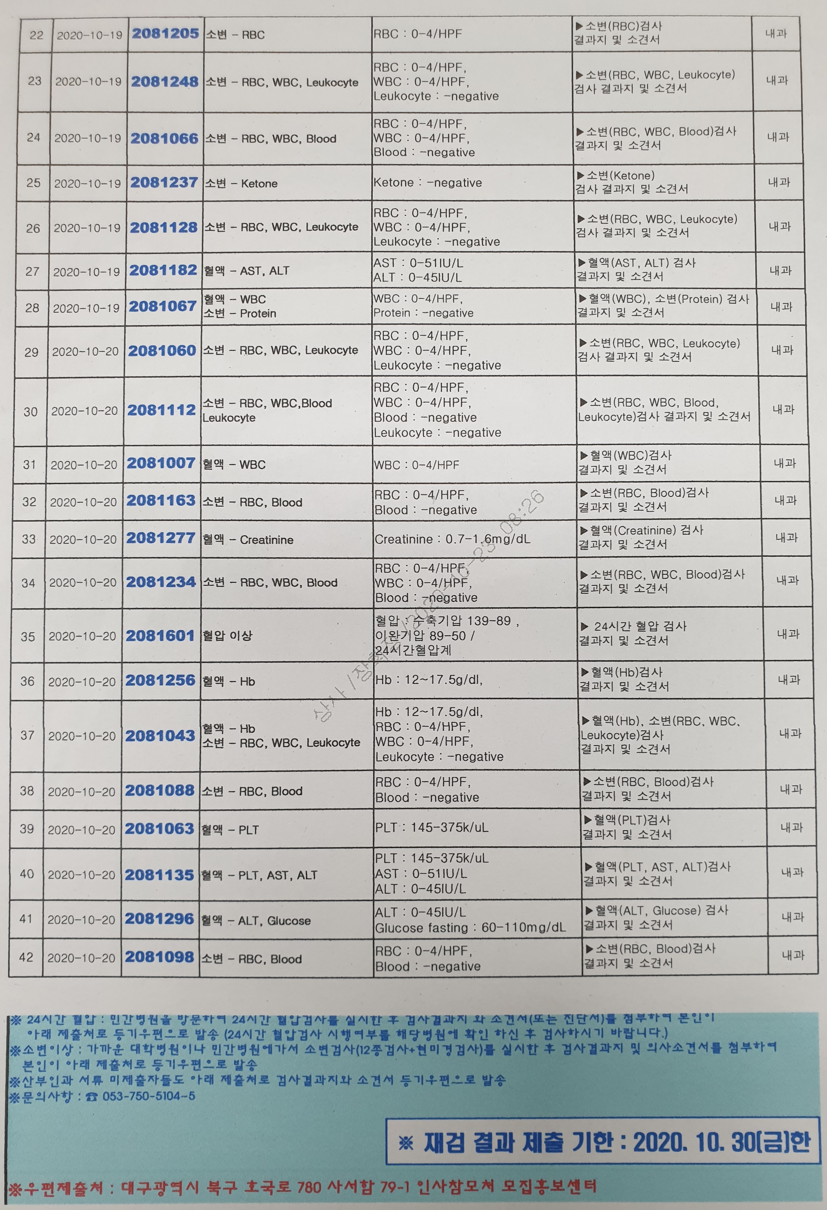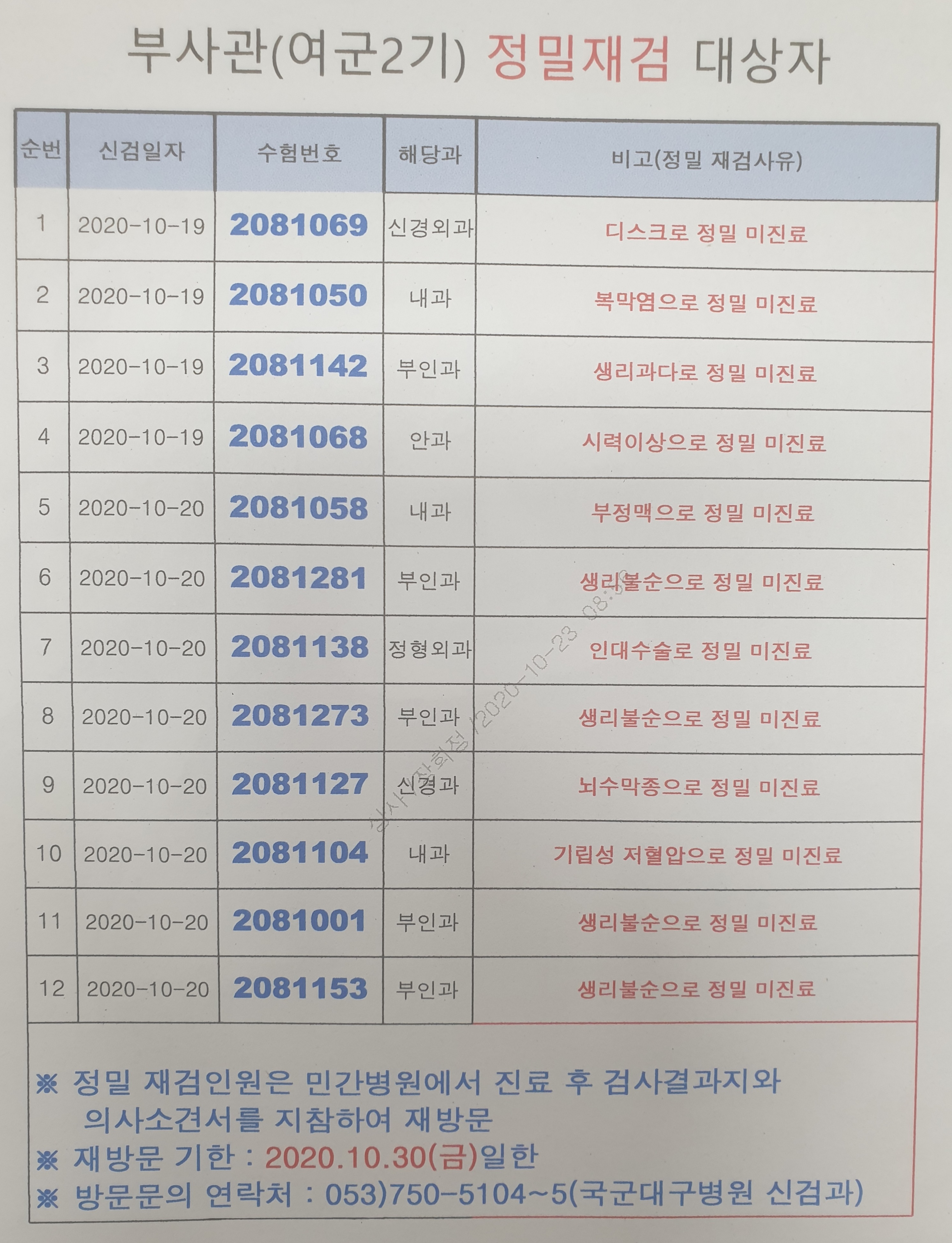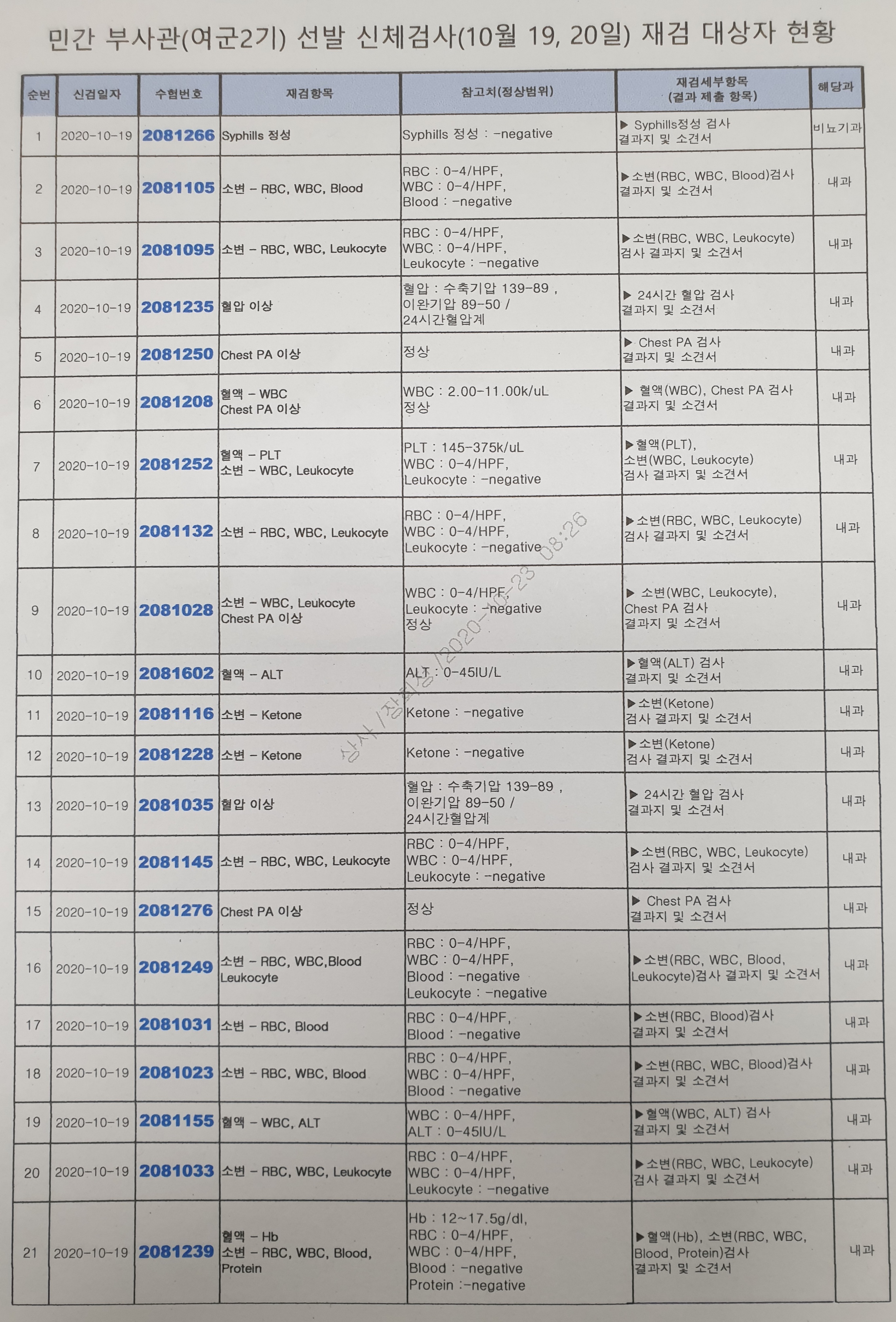 * 정밀 신검대상자는 민간병원 검사결과지와