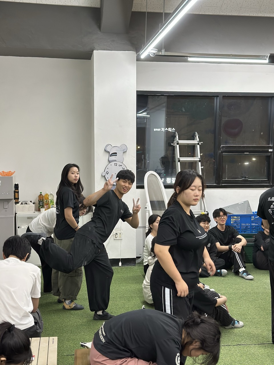 임원진들이 모여 프로그램 시작전 준비 운동 진행 .