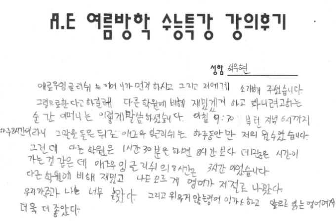 같은데 애로우잉글리쉬의 8시간은 3시간이었습니다. 다른학원에 비해 재밌고,