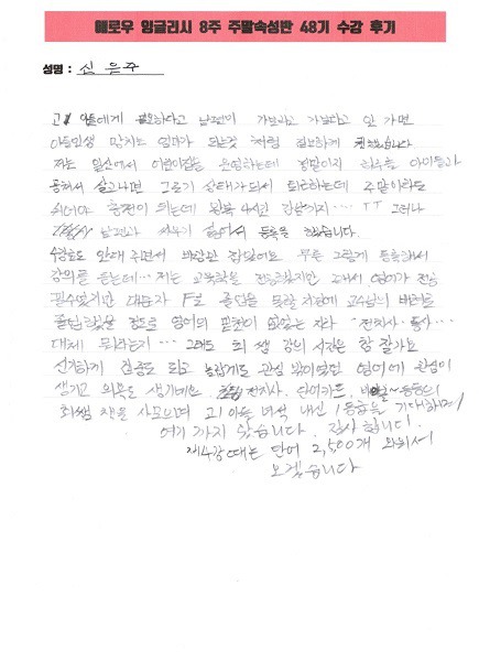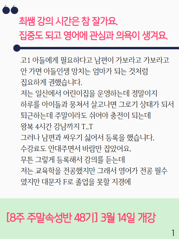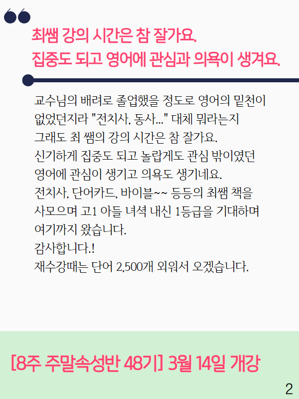 8주 주말속성반 48기 | [스크린활용반]_최쌤 강의 시간은 참 잘가요. 집중도 되고 영어에 관심과 의욕이 생겨요.