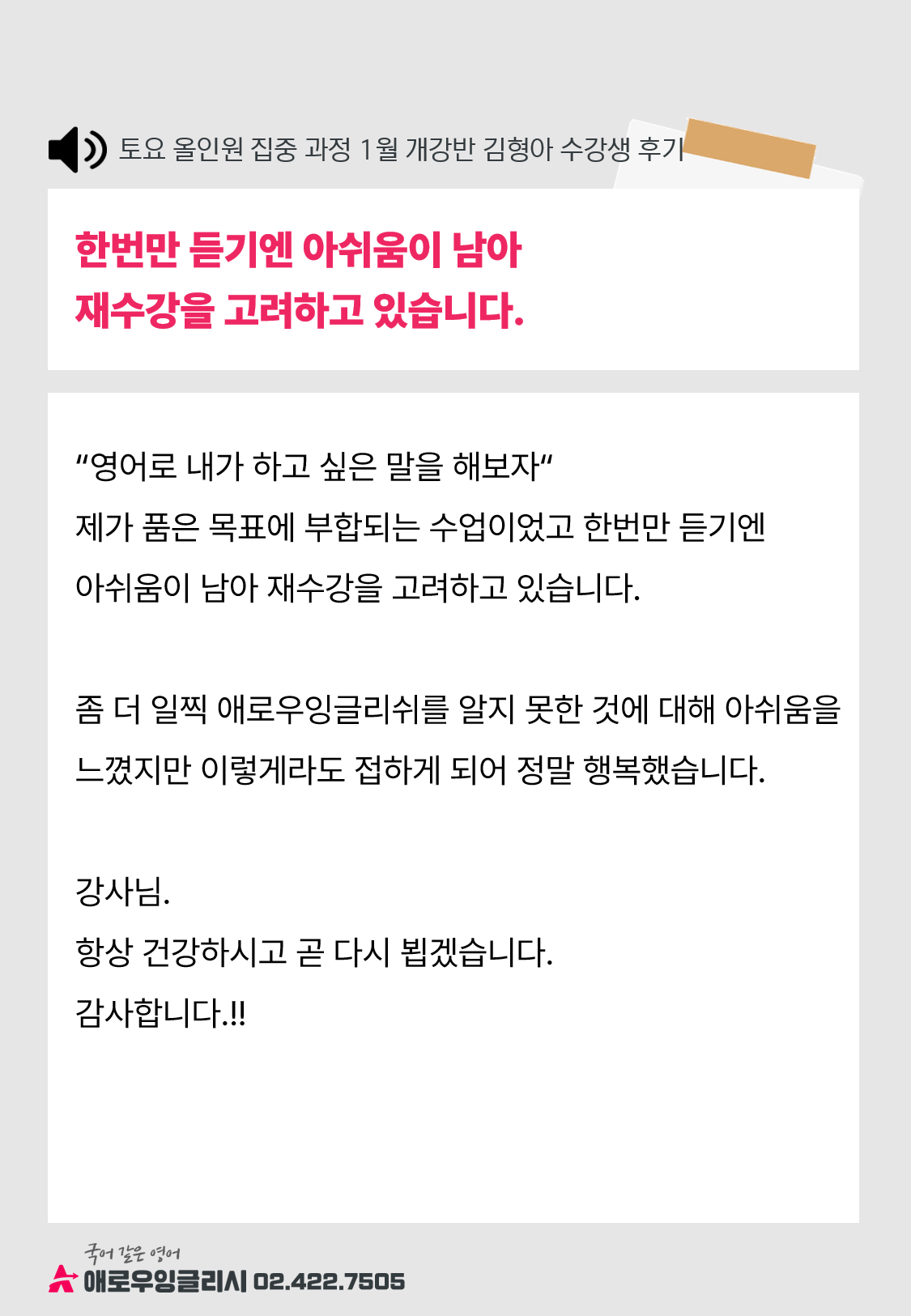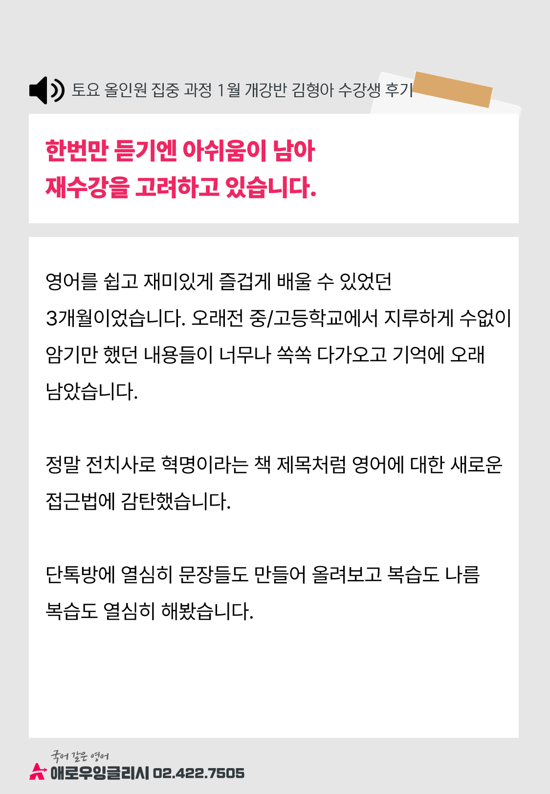 (2025년 1월 개강반) 토요 영어회화 집중 훈련반 후기 : 한번만 듣기엔 아쉬움이 남아 재수강을 고려하고 있습니다.