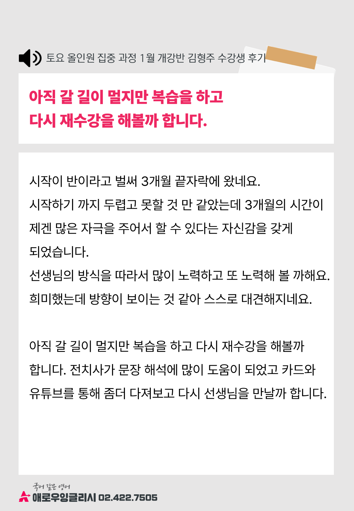(2025년 1월 개강반) 토요 영어회화 집중 훈련반 후기 : 아직 갈 길이 멀지만 복습을 하고 다시 재수강을 해볼까 합니다.