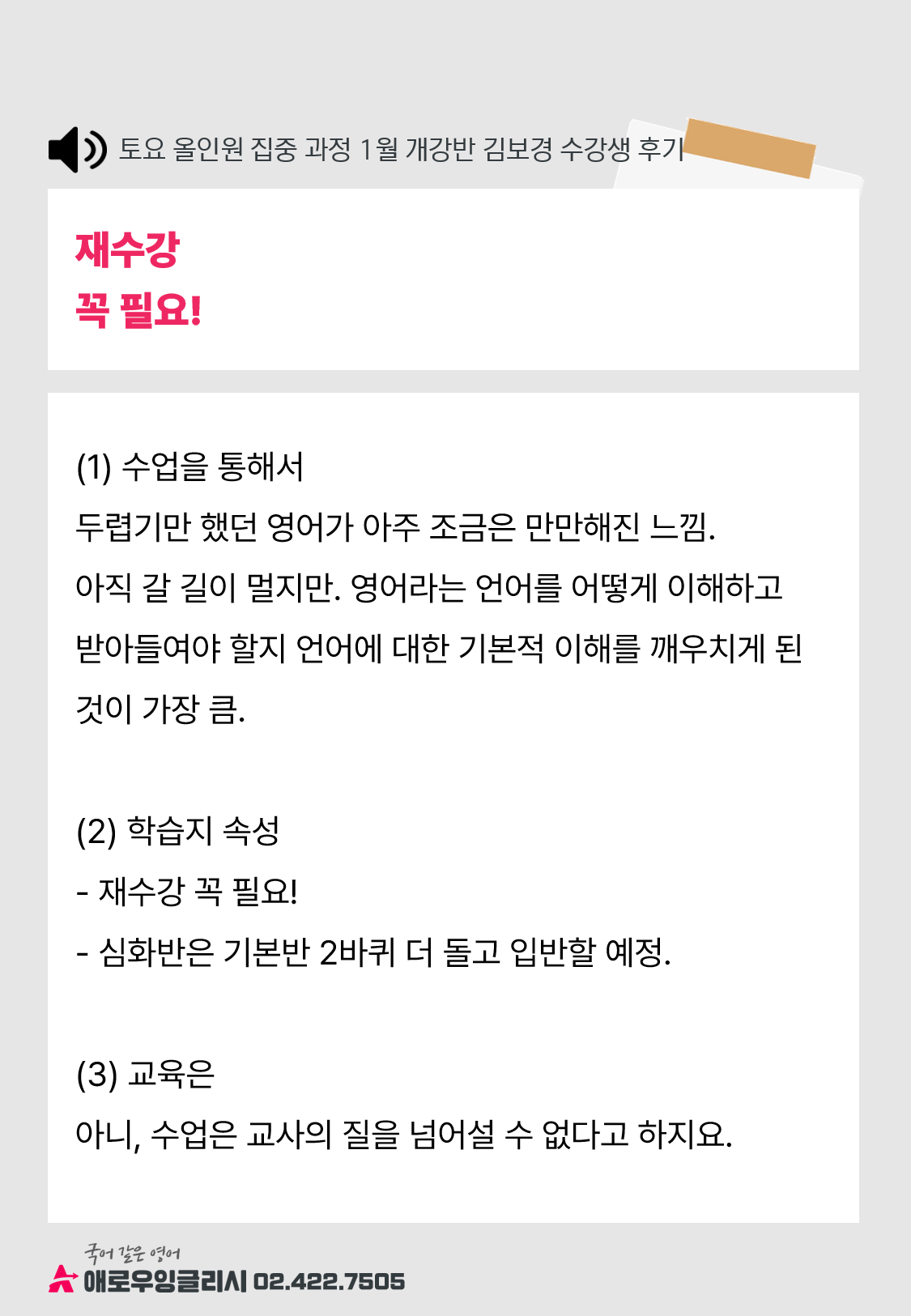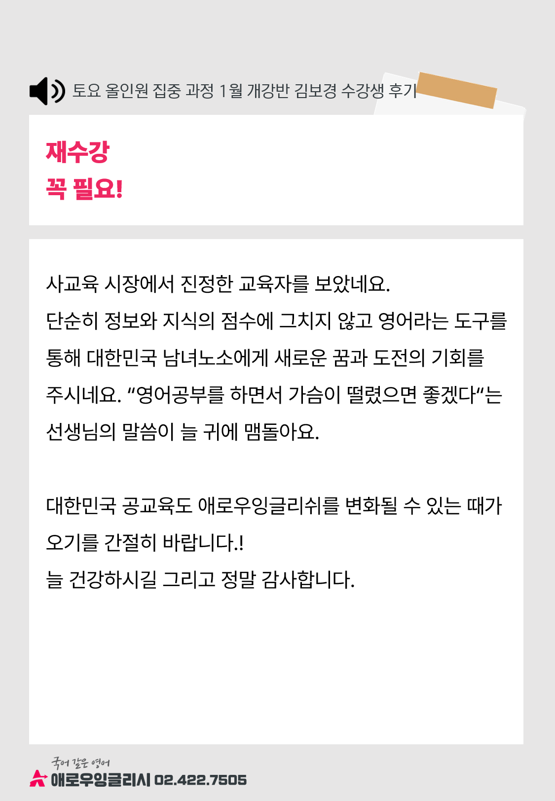 "영어공부를 하면서 가슴이 떨렸으면 좋겠다"는