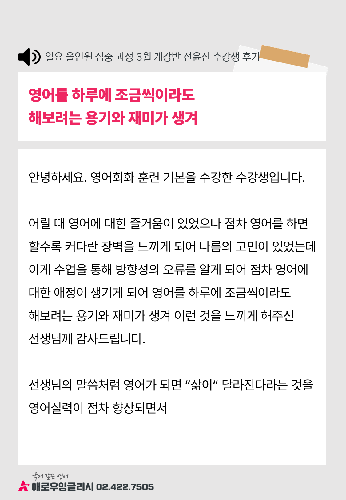 영어회화 훈련 기본을 수강한 수강생입니다.