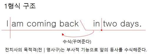 지금까지는.. I'm coming back / in two days. 로 전치사 앞을 분리해서..
