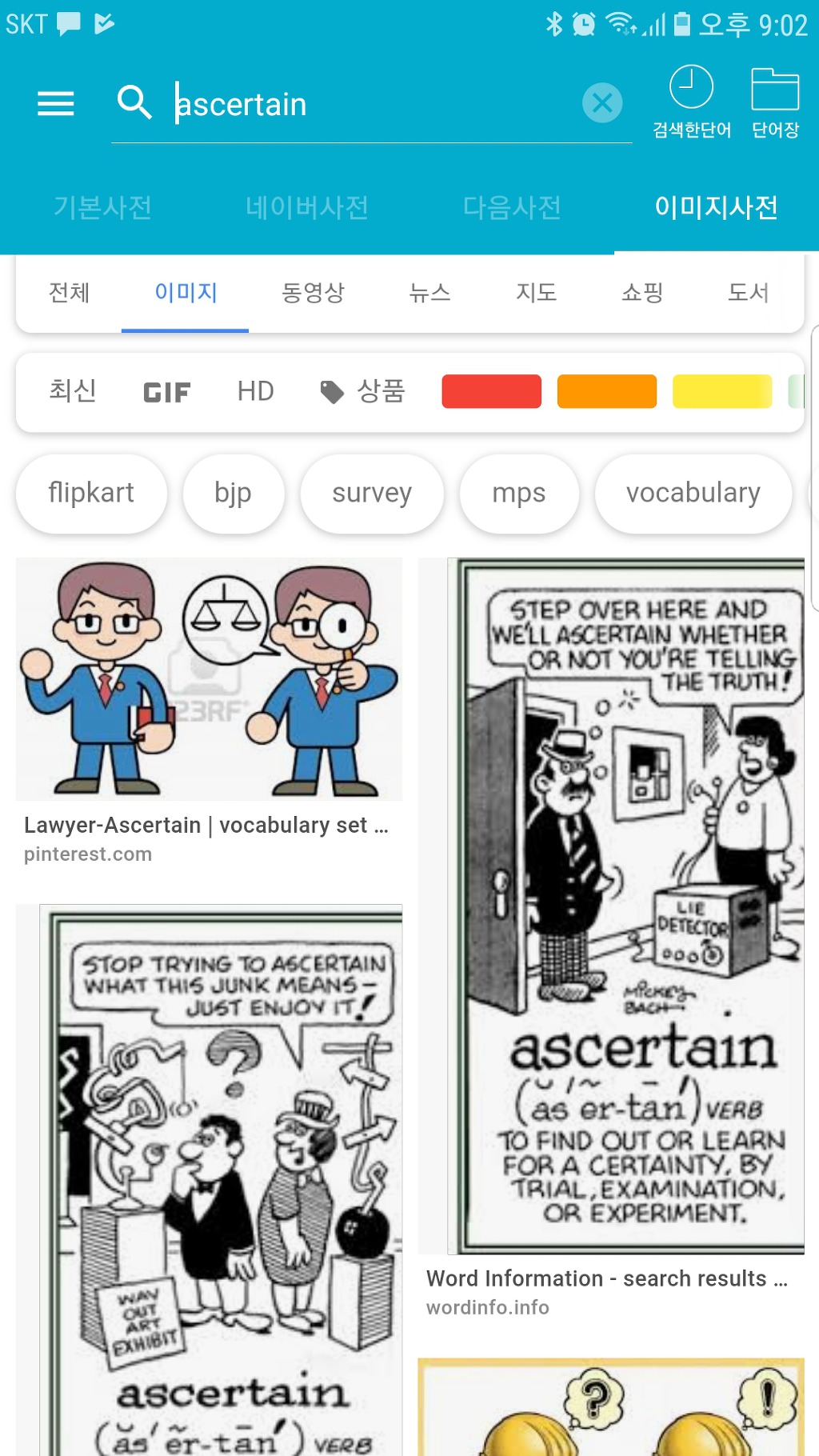 한글로 우리말을 알려주는 기능과, 구글 이미지를 통하여 단어를 이미지화 시켜주는 기능은 정말 정말 좋은 기능입니다.