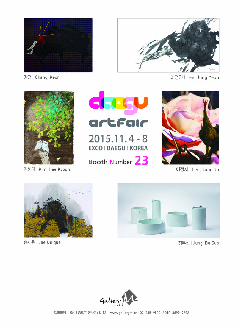 11월 4일부터 11월 8일까지 대구 엑스코에서 총 6인의 작가와 함께 2015 대구아트페어에 참가합니다.