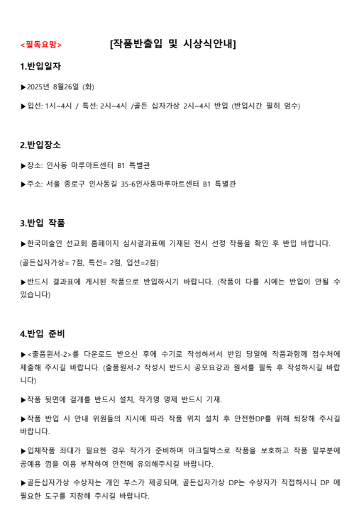 반입반출 안내 작성자이기선|작성시간25.08.14|조회수51 목록 댓글 0 글자크기 작게가 글자크기 크게가 다음검색 현재 게시글 추가 기능 열기 북마크 공유하기 신고 센터로 신고 댓글 댓글 0 댓글쓰기 답글쓰기 댓글 리스트