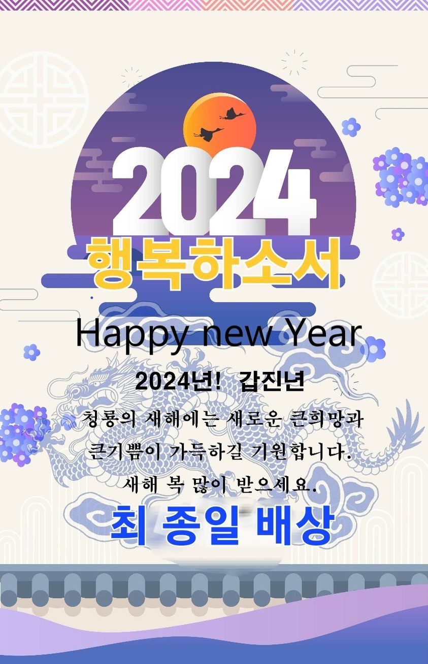 이번주의 말씀 2024년1월1일- 호혜성을 여기(가정, 일터)에 세워, 여왕, 왕King 으로, 온 누리에 하나됨을 일깨우게 하소서! 또한 나의 성품이 무엇인지를 알게 하소서! 매 순간 특권을 통찰하여 아름다움을 볼 수 있게 하소서! Excerpted from: 생명의 샘, The Fountain of Life, 새해복 많이 받으세요, Happy new year, 새해, 그리스도와 함께하는 승리, “그러나 우리 주 예수 그리스도를 통하여 우리에게 승리를 주시는 하나님께 우리는 감사를 드립니다”(고린도 전서 15:57).그리스도와 함께라면 우리는 승리자입니다! 그리스도께서 나타나셨습니다, “말하였다. ‘유대인의 왕으로 나신 이가 어디에 계십니까? 우리가 동방에서 그의 별을 보고, 그에게 경배하러 왔습니다’"(마태복음 2:2).우리 모두 주님을 지속적으로 간구하도록 합시다. “생명의 특성 자체에는 즐거움과 행복이 포함되어 있습니다. 그것은 당신 바깥에서 얻을 수 없습니다. 당신이 그것을 갖고자 한다면 그것은 당신의 안에서 솟아나지 않으면 안됩니다…," Victory with Christ “But thanks be to God, who gives us the victory through our Lord Jesus Christ!”(1 Corinthians 15: 57). With Christ we are victors! Christ has appeared “Where is He who has been born King of the Jews? For we have seen His star in the East and have come to worship Him.”(Matthew 2: 2). Let us seek the Lord persistently. “The very quality of life itself includes enjoyment, happiness. You cannot get it from outside yourself. It must, if you are to have it, spring forth from inside yourself", 새해에도 행복누리기길 바라며, 참된 존재로 나 자신이 주도적으로 묵상하며 사랑합시다. 올바른 조건에 주님의 말씀을 올바르게 깊이 듣고 마음의 치유를 다룹니다. 주여! 저에게 축복을 주소서. 온갖 종류의 혼란, 갈등, 재난의 을 견디어 모든 것은 그대로 존재하는 베품이 자동적이며, 태양이 비추는 것처럼 비추어 사랑을 베풀면 인간들이 그 사랑에 응답하는 만큼 그들의 삶에 영향을 미쳐 나아가 모두가 행복하시게 하소서. 다음 주에 이어집니다..,, 채플 삶의 예술세미나- 마음힐링 심포지엄을 진행할 예정입니다. 한국목회 인성 성장 교육 아트세라피- 마음힐링 세미나, 마지막 주 2박3일(금5시-토, 일 5시까지) 최 종일 010-9570-3826, *참된 존재로 나 자신이 주도적으로 묵상하며 사랑합시다. 책 소개- 묵상, 쉼, 힐링 칼라링(e퍼플)전자북, 채플 나다움 묵상 그림 집, 사랑의 길을 통한 리더십(부크크), 성품자가진단법, 행복치기 사랑의 정원에서 시화집, 지금 이 순간 말씀과 일 등 최종일저 십자가 만달라 옆에서의 힐링, 인성을 키우는 드림 유니크, https://bookk.co.kr/bookStore/64bf01e70d55a495ca8ed70f 감사합니다. 최종일 목사